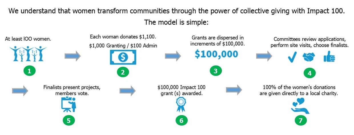 We believe in empowering women to become agents of change in their communities. Your donation can help us provide education, training, and support to others. Impact 100 St. Lucie is a group of passionate philanthropic women who collectively work together to make a lasting and transformational impact in Saint Lucie County. This is accomplished by at least 100 women donating $1,100 to become a member for a designated year, providing each woman with one vote, and resulting in a $100,000 grant award to a local charity. Impact 100 St. Lucie has no paid employees or staff; thus, one hundred percent of each member’s $1,000 donation is pooled together to fund $100,000 grants. The additional $100 is for operating costs through The Community Foundation Martin - St. Lucie (TCFMSL). The full amount of membership is tax-deductible. Impact 100 St. Lucie is open to all women regardless of residence.